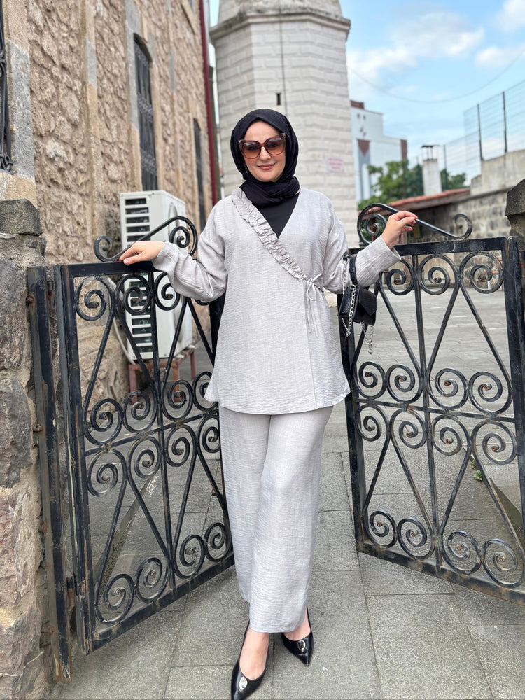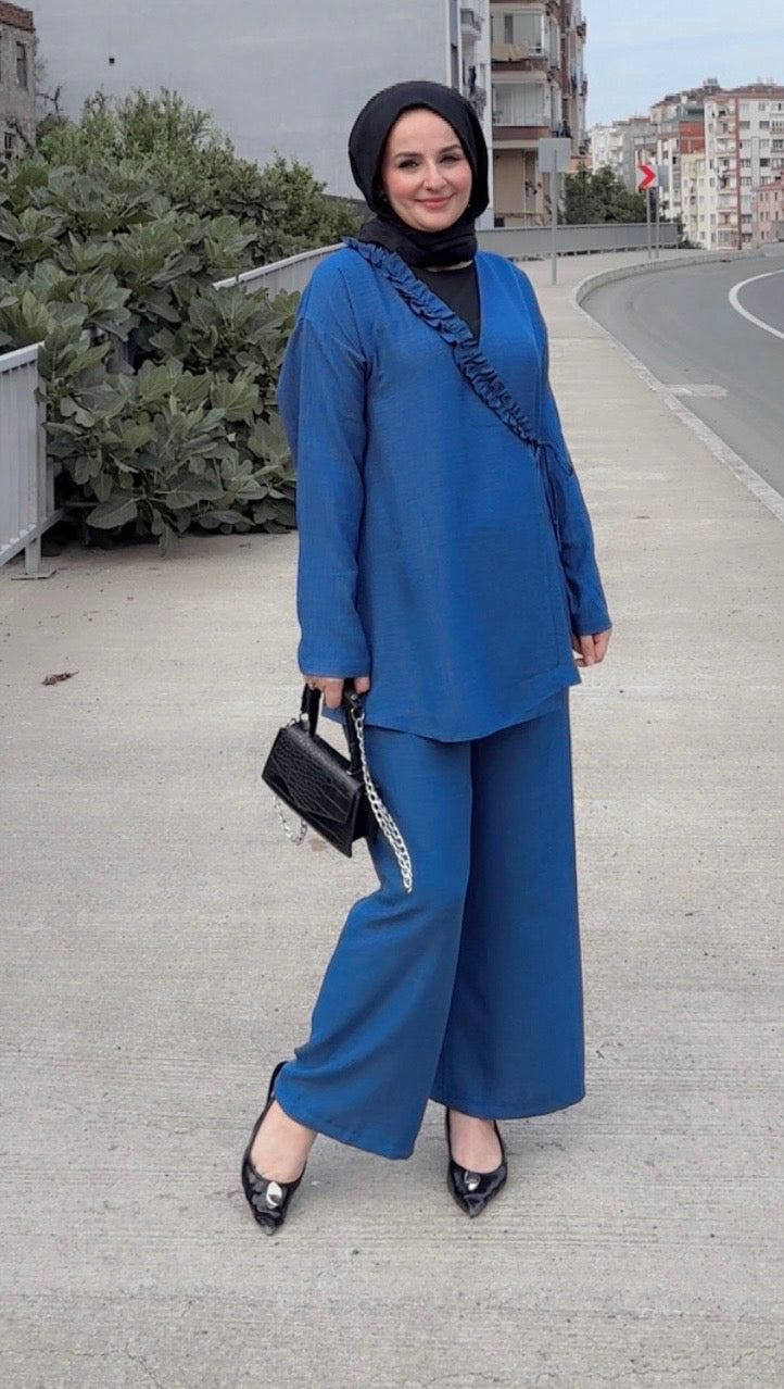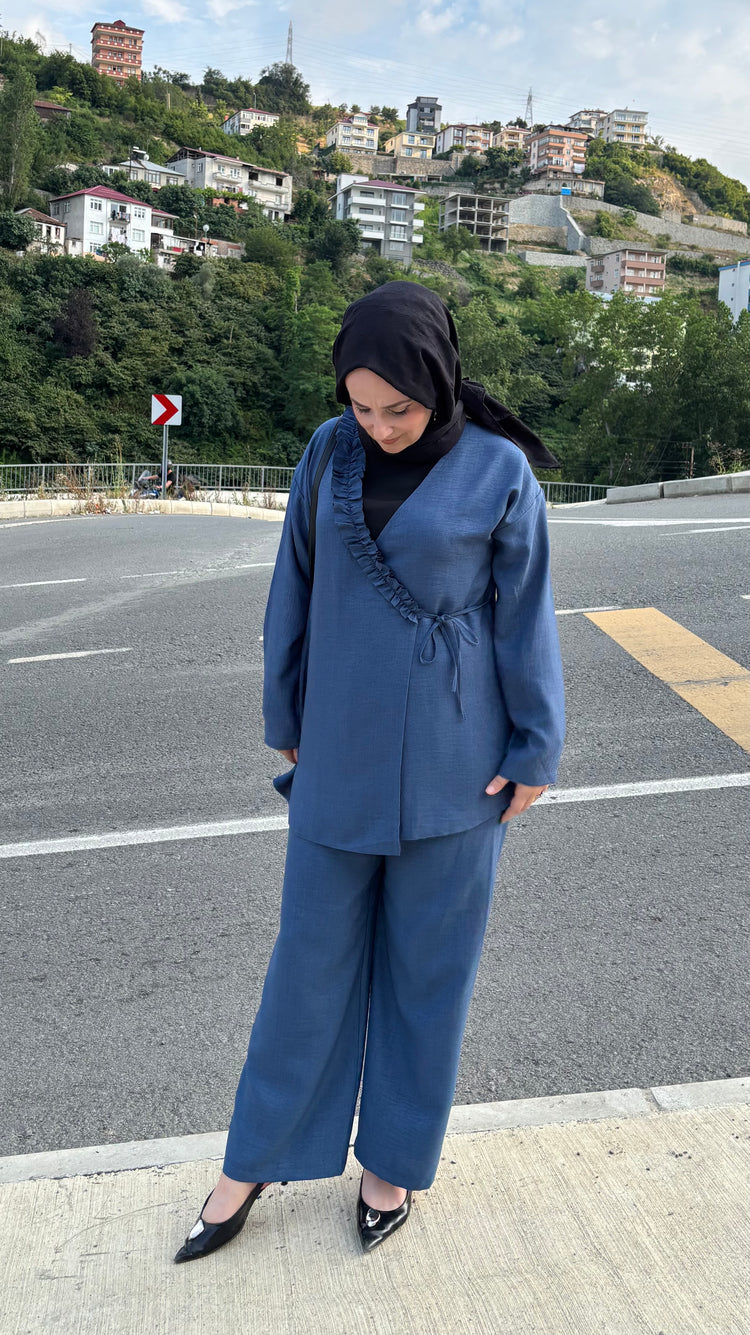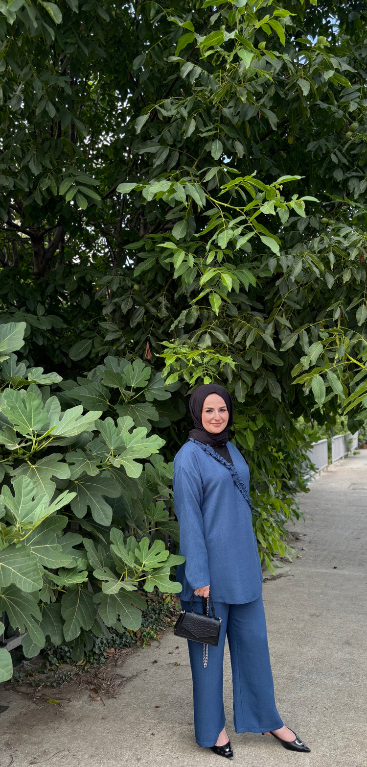 Sıcak havalarda ferah kalmak isteyenler için özel olarak tasarlanan bu ikili takım, hafif ve nefes alabilen Sofya kumaşı sayesinde yaz aylarında konforu zirveye taşıyor. Terletmeyen ve iç göstermeyen yapısı ile gün boyu rahatlık sunarken, modern kesimiyle stilinizi ön plana çıkarıyor.