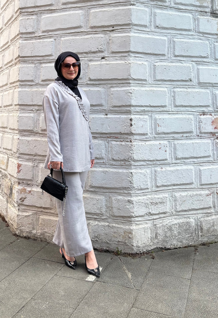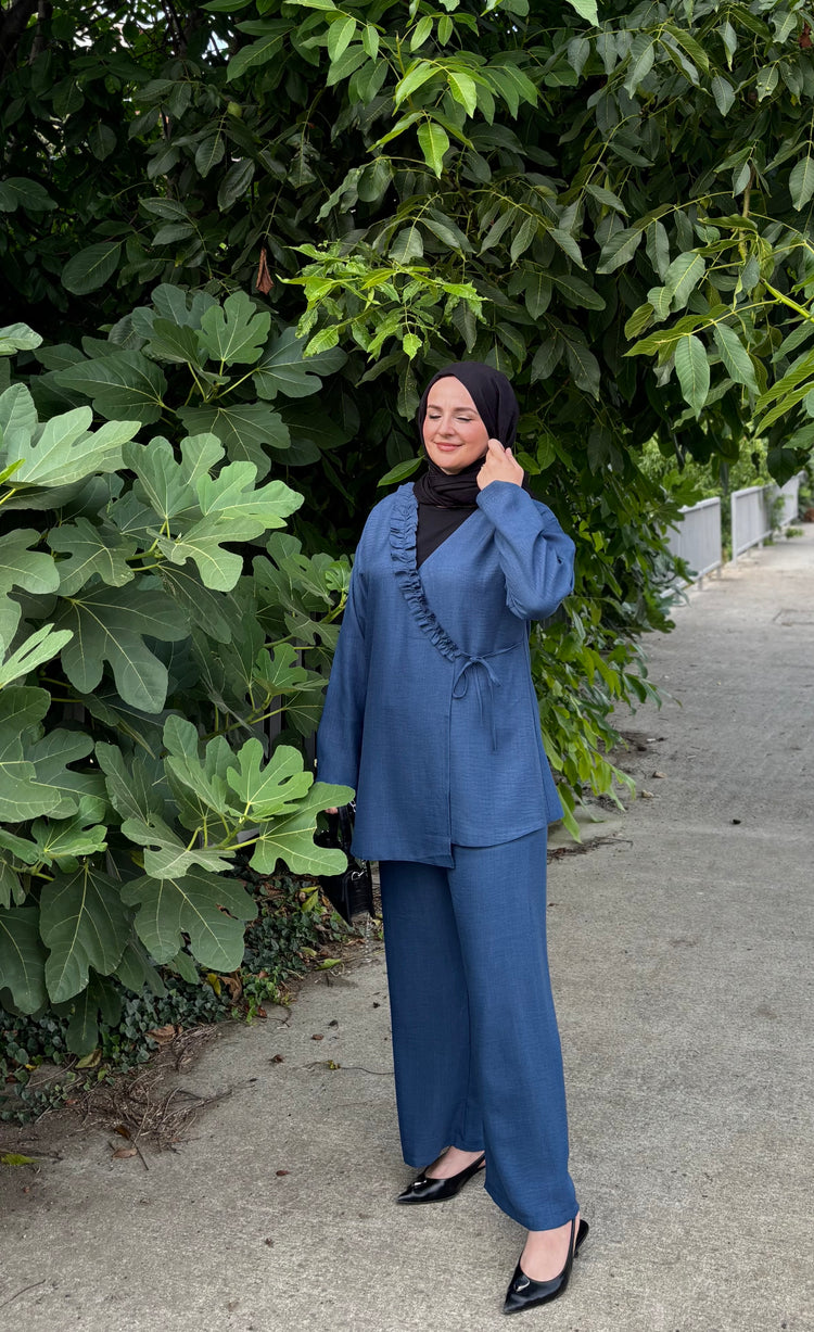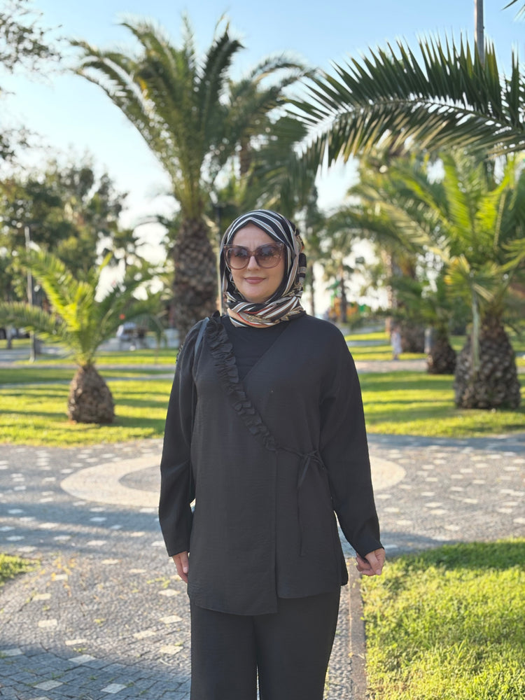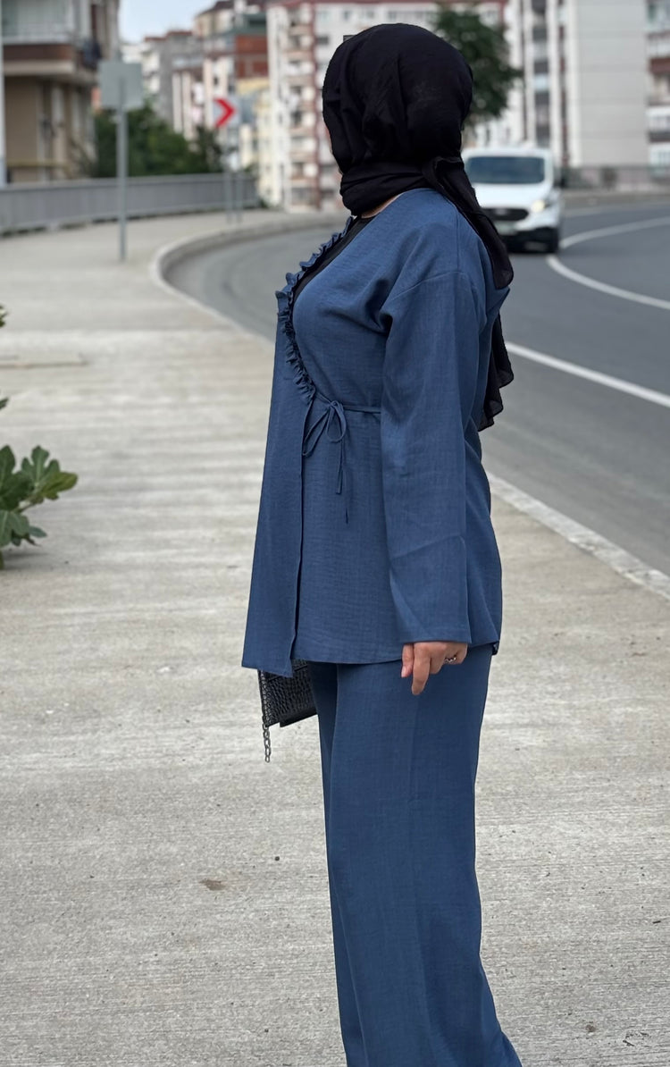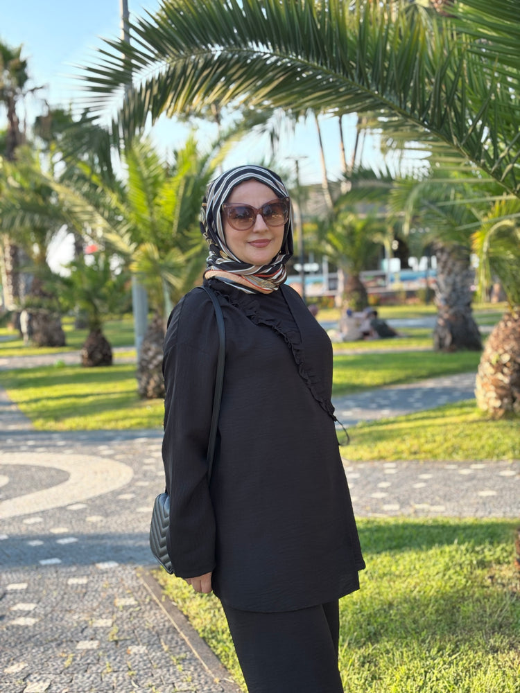 Sıcak havalarda ferah kalmak isteyenler için özel olarak tasarlanan bu ikili takım, hafif ve nefes alabilen Sofya kumaşı sayesinde yaz aylarında konforu zirveye taşıyor. Terletmeyen ve iç göstermeyen yapısı ile gün boyu rahatlık sunarken, modern kesimiyle stilinizi ön plana çıkarıyor.