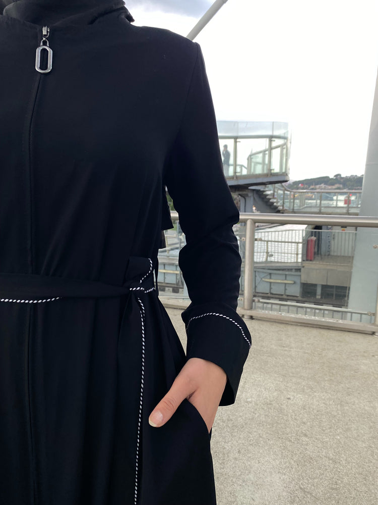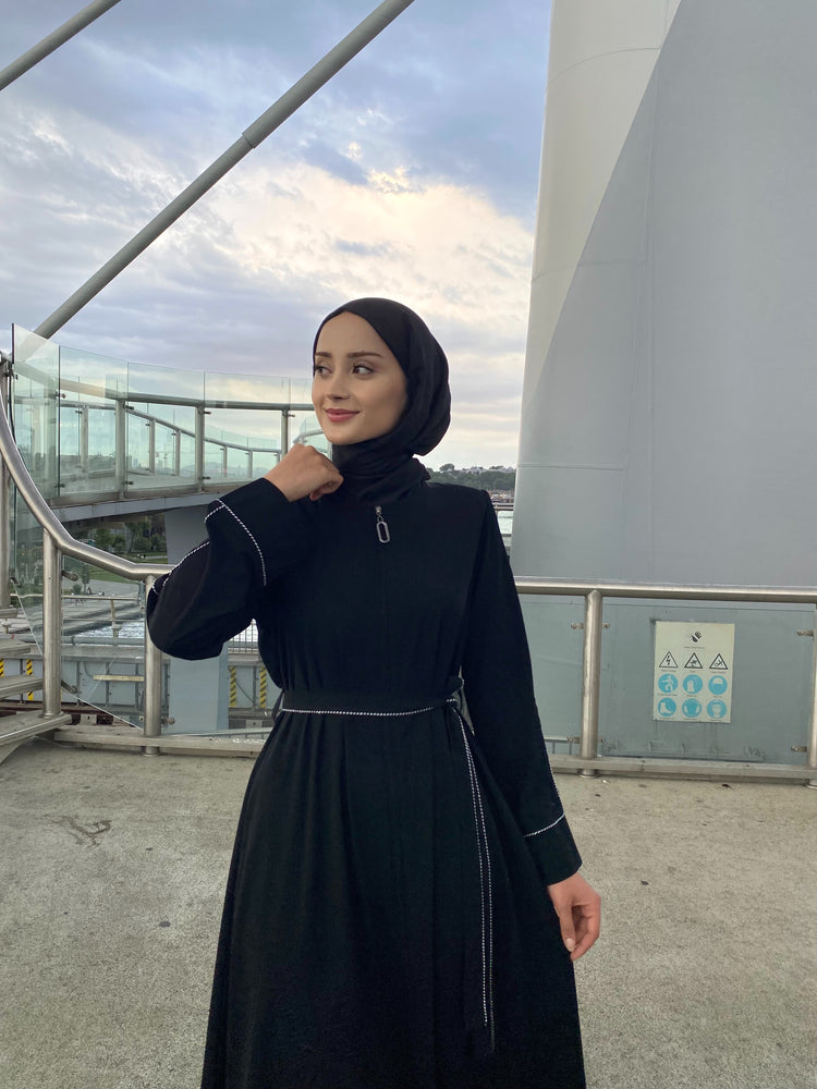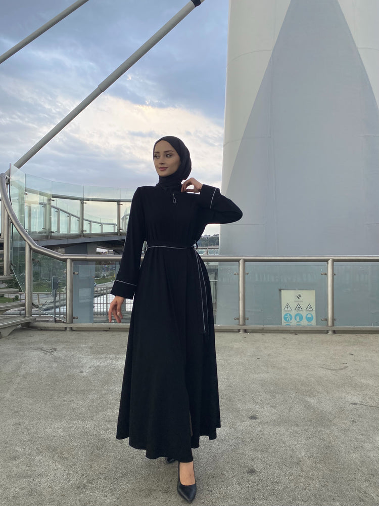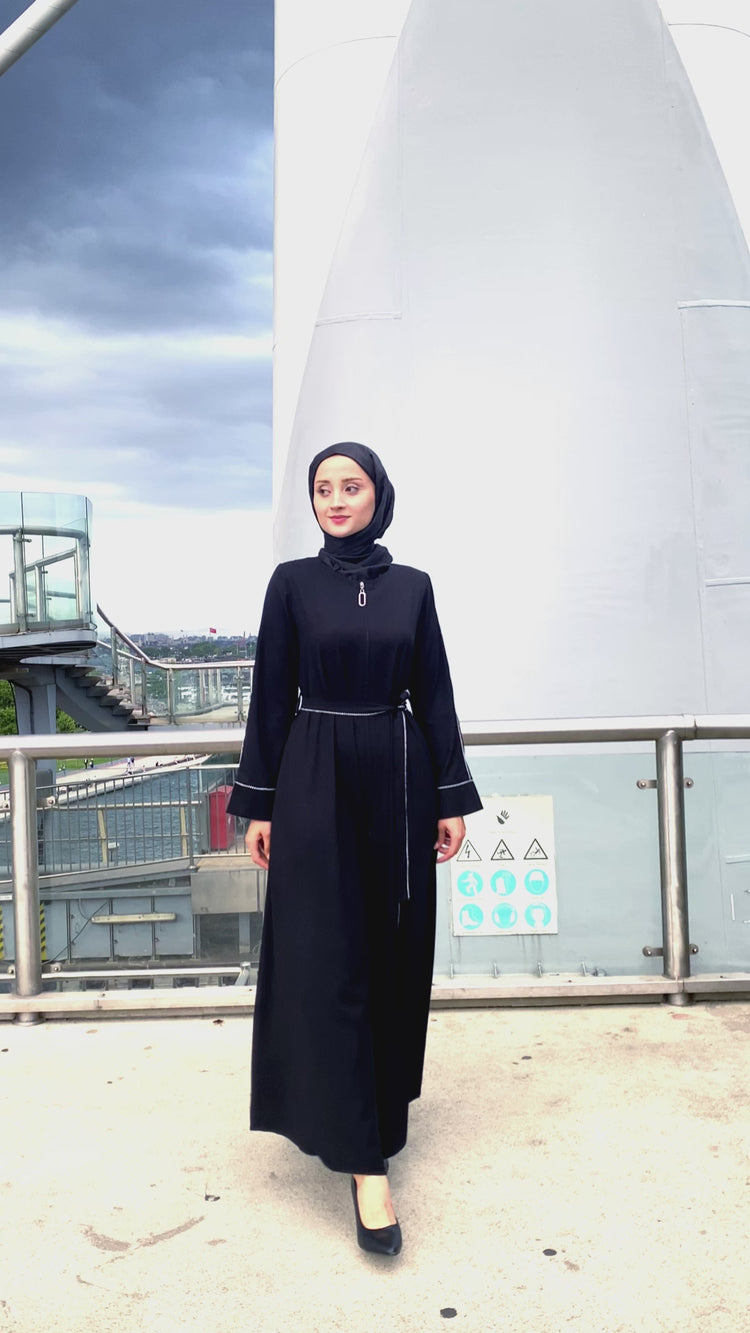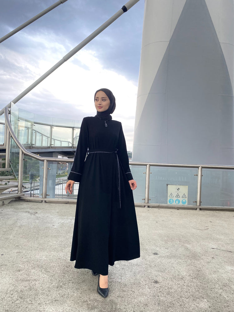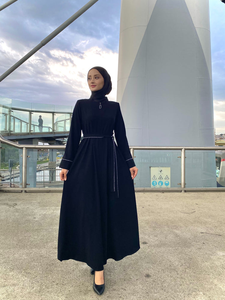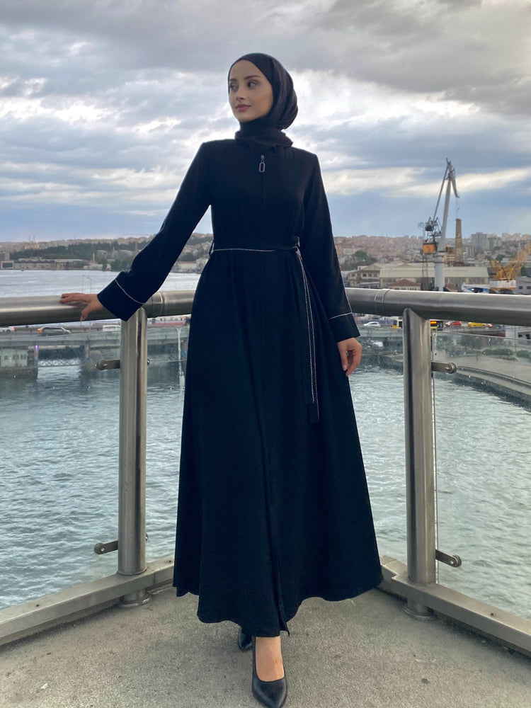 Kol ve Kemer Biyeli Gizli Fermuarlı Kloş Ferace-5124-A