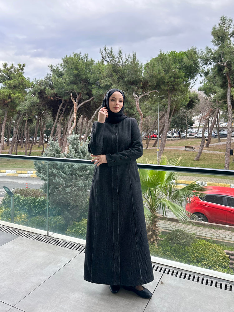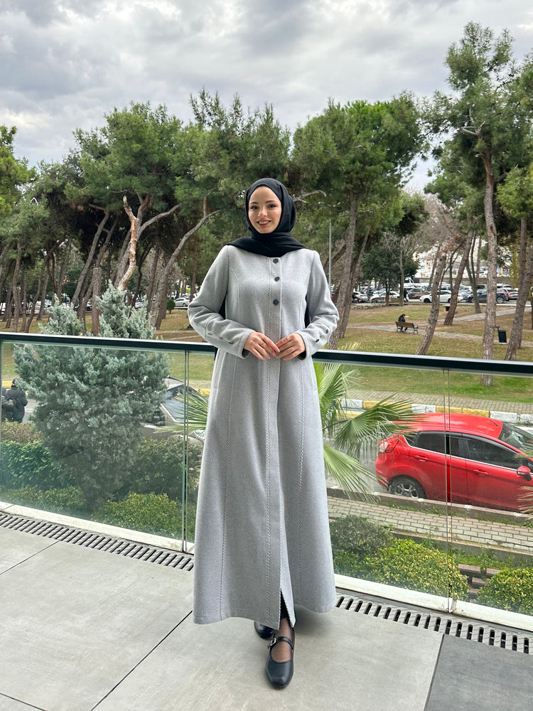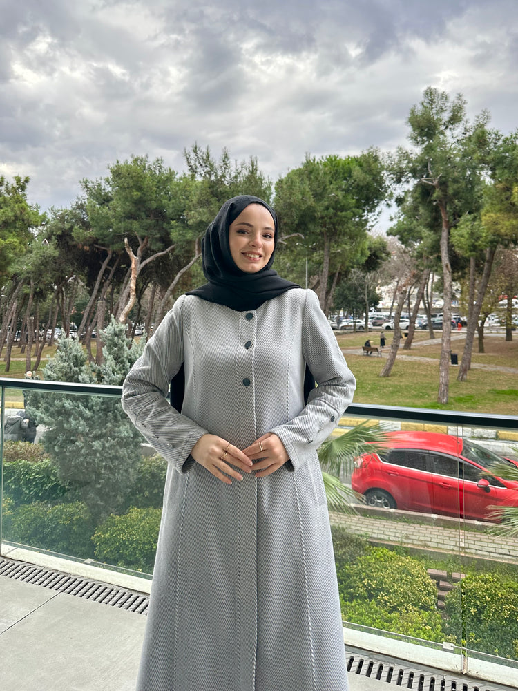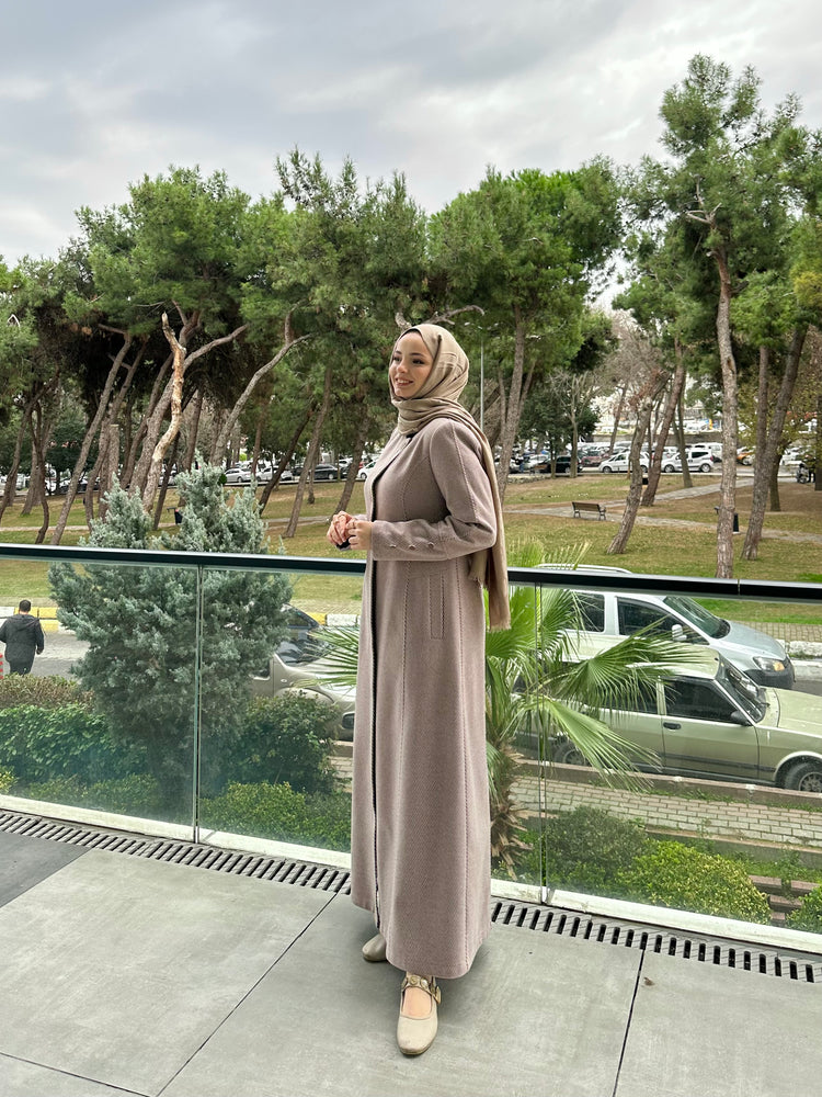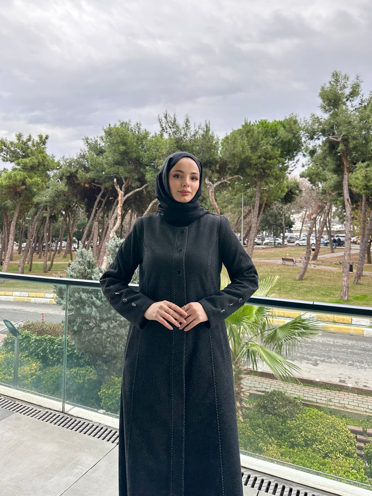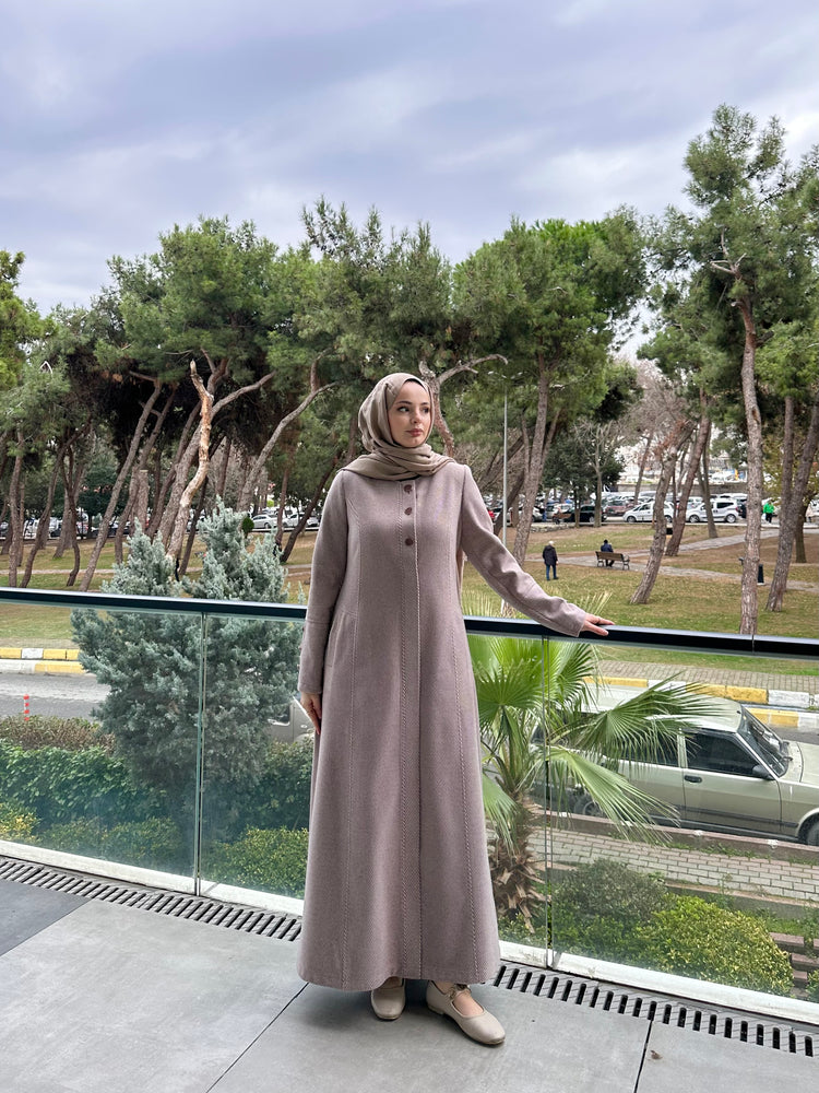 Ön ve kol kısımlarında kullanılan özel mineli düğmeler, modele modern ve sofistike bir görünüm kazandırır. Cep üstlerinde yer alan modern kesik detayları tasarımı hareketlendirirken, kuplu kalıbı vücuda oturan şık bir form sunar. Aşağı doğru açılan evaze kesimi ise hem rahat hareket imkânı sağlar hem de feminen bir duruş kazandırır.