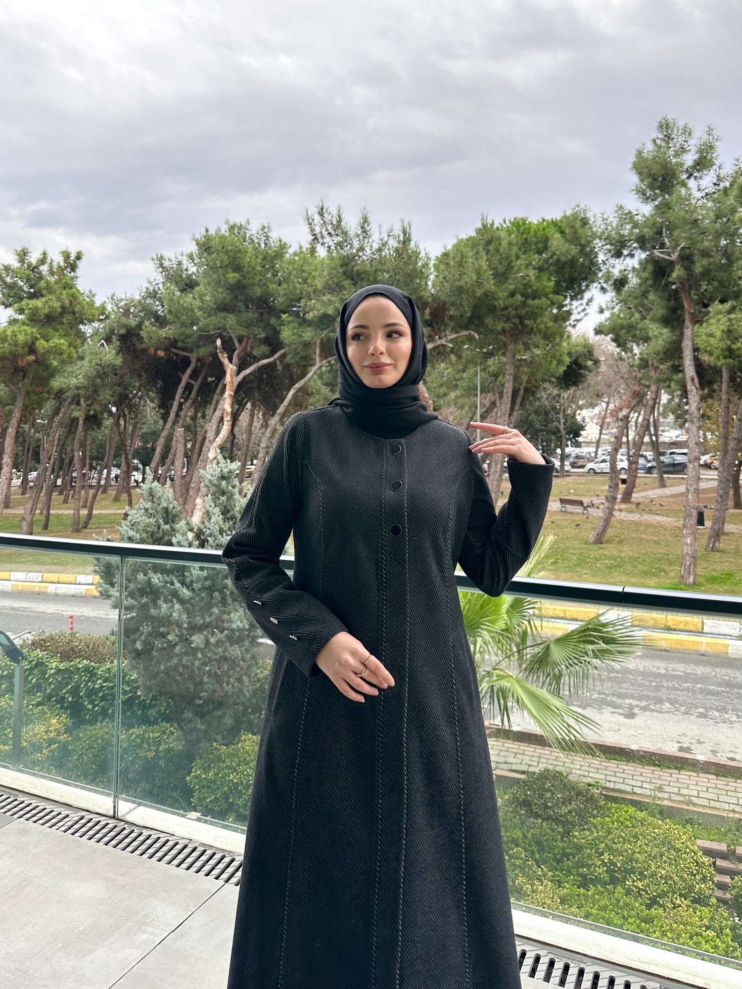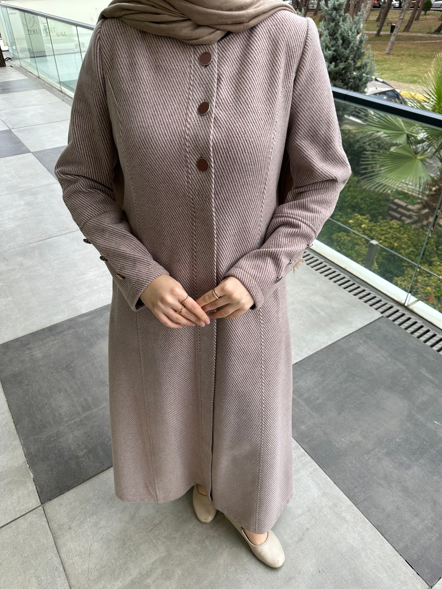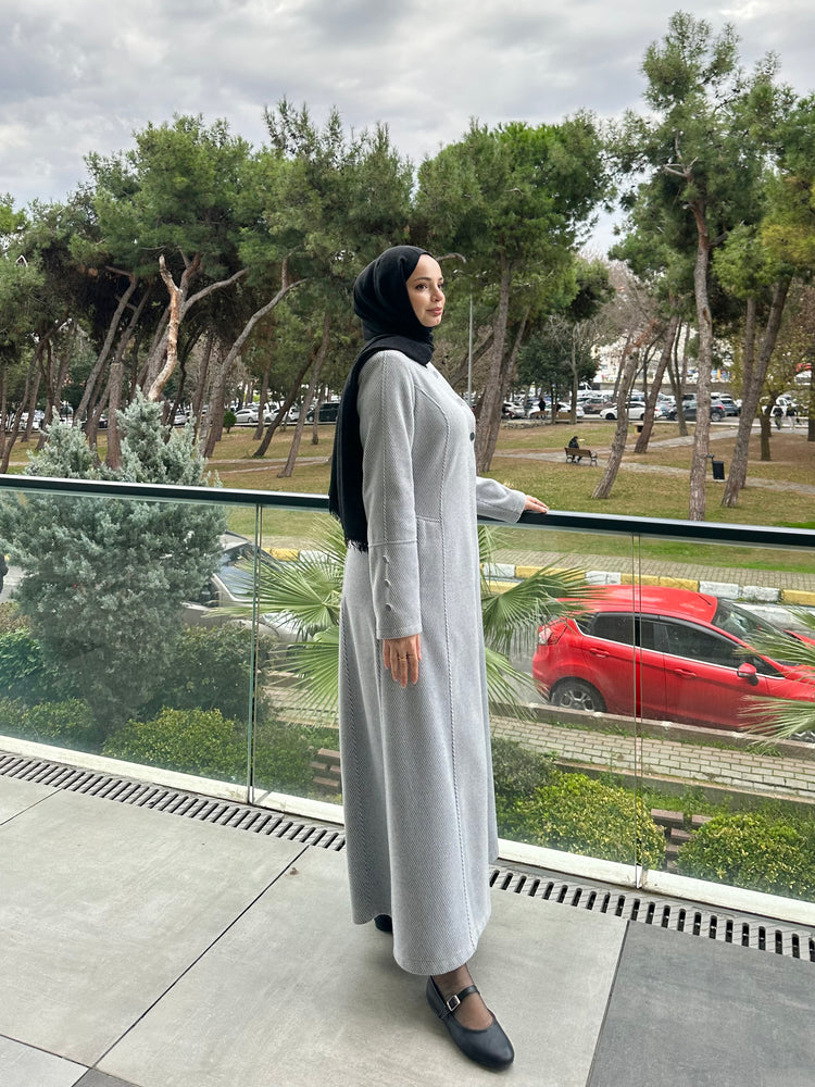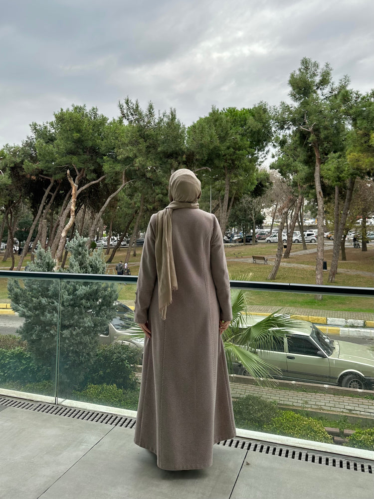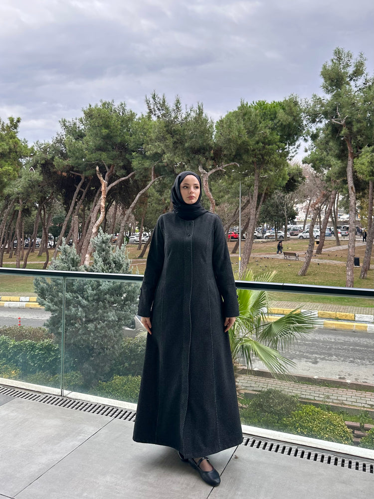 Ön ve kol kısımlarında kullanılan özel mineli düğmeler, modele modern ve sofistike bir görünüm kazandırır. Cep üstlerinde yer alan modern kesik detayları tasarımı hareketlendirirken, kuplu kalıbı vücuda oturan şık bir form sunar. Aşağı doğru açılan evaze kesimi ise hem rahat hareket imkânı sağlar hem de feminen bir duruş kazandırır.